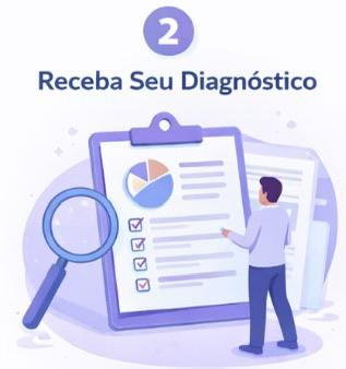 Após a análise das respostas, você receberá um diagnóstico claro mostrando seus pontos fortes, bloqueios e áreas que precisam de crescimento.